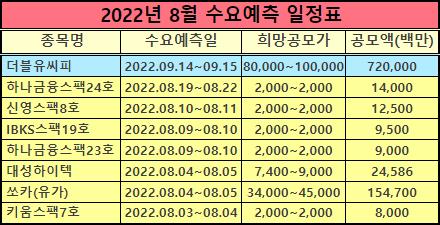 위에 8월에 진행하는 공모주 IPO 일정을 표로 정리해놨으니 다시 확인하세요.