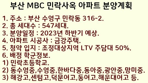 1. 분양 주소 : 부산 수영구 민락동 316-2번지.