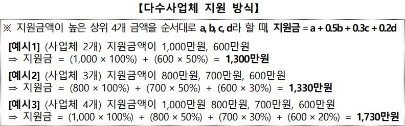 예를들어서 2개의 사업체를 갖고있다면, 최대 100%, 50%비율로 1,500만원을 지원받습니다.