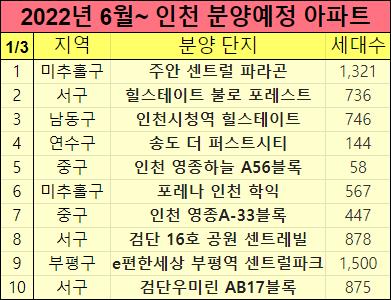 2022년 6월이후 인천 분양예정아파트를 표초 정리했습니다.