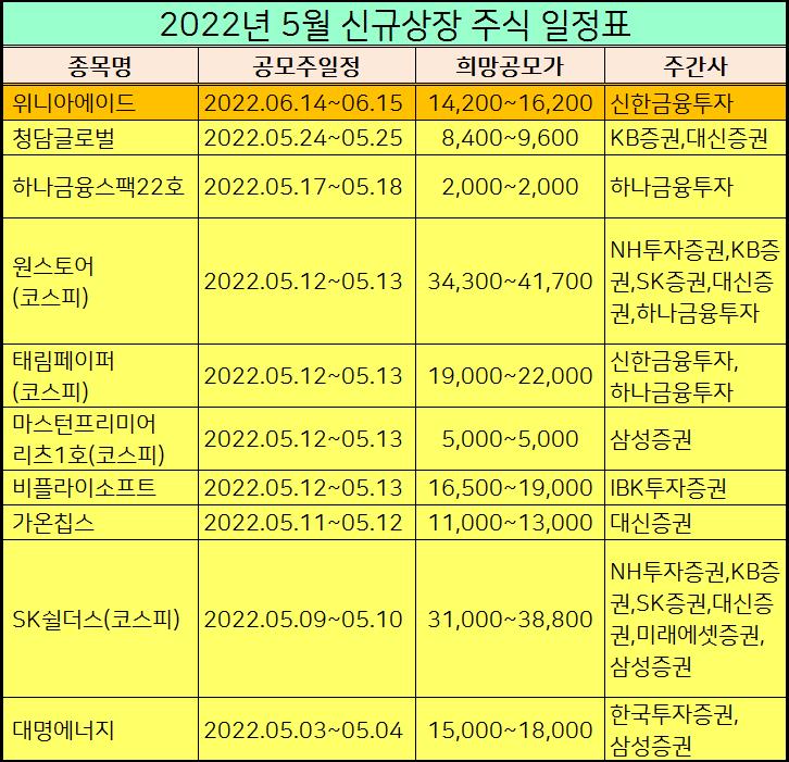 2022년 5월에 신규상장하는 주식 일정을 정리했습니다.