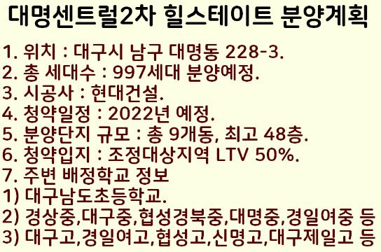 대구시 대명동 센트럴2차 힐스테이트 아파트 분양계획을 정리했습니다.