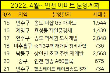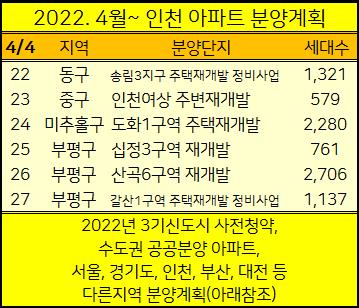 2022년 4월이후 인천에서 분양예정인 아파트를 정리했습니다.