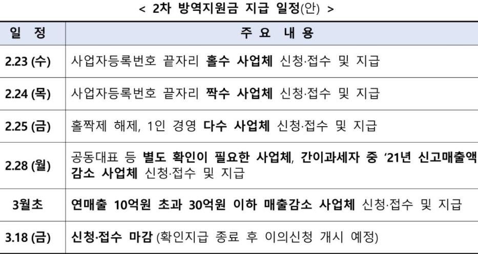 2차 소상공인 방역지원금 접수가 시작되었습니다.