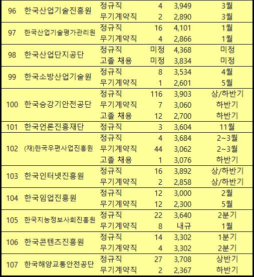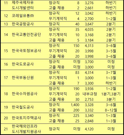 각 공기업들의 홈페이지에서 채용공고란에 정확한 사항을 재확인하셔서 원하시는 공공기관에 취업에 성공하시기를 바랍니다.