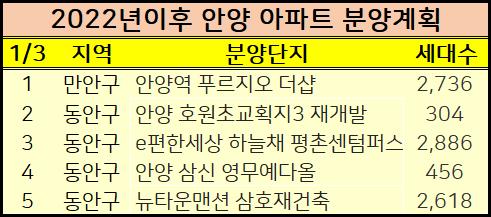 2022년 안양시에서 분양예정인 아파트 14곳을 표로 정리했습니다.