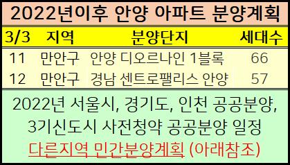 위에 2022년 서울과 경기도, 인천 등 다른지역 분양계획과 3기신도시 사전청약일정도 참고하시기 바랍니다.