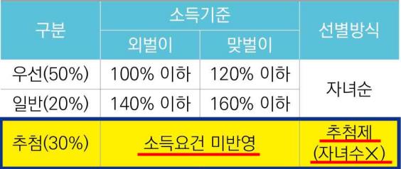 하지만 자녀가 있는 신혼부부의 경우에는 추첨이 아닌 우선공급을 지원하는것이 가장 현명합니다.