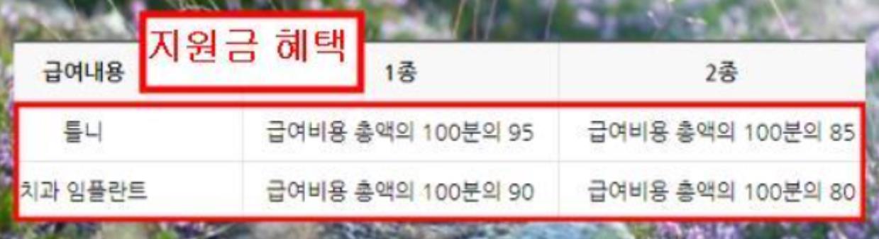 만약 본인이 1종/2종 수급권자라면 의료급여 지원받아서 틀니의 경우 5%만 본인부담하시면 됩니다.