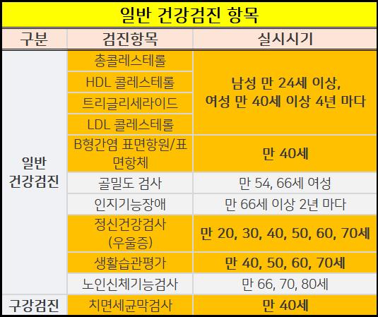 이렇게 40세 생애전환기 건강검진 항목을 모두 정리해서 알려드렸습니다.