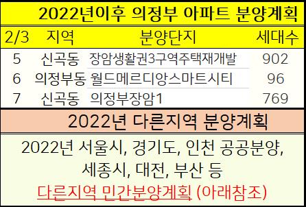 이렇게 2022년이후로 의정부에서 분양예정인 아파트 청약일정을 정리했습니다.