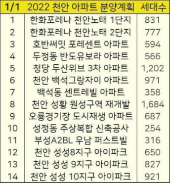 아래 2022년 천안아산, 경기도, 서울, 인천, 대전 등 분양계획도 참고하세요.
