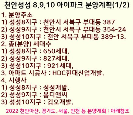 천안시 서북구 부대동에 성성 8지구, 9구지, 10지구 아이파크 아파트 분양계획을 정리했습니다.