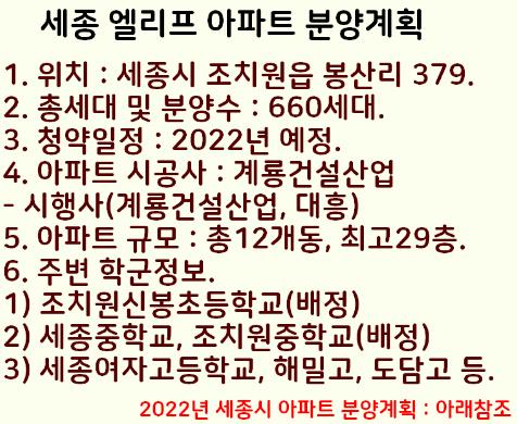 세종시 조치원읍 봉산리379에 위치한 엘리프세종 아파트 분양계획을 정리했습니다.