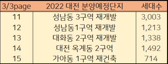 열한번째. 대전 성남동 3구역 재개발 아파트 / 3,003세대.