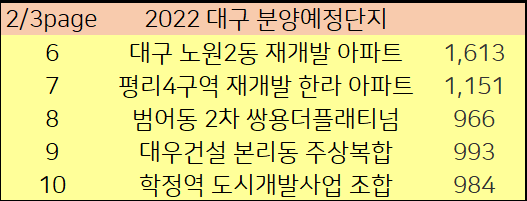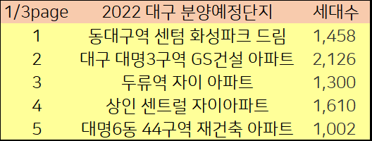 2022년에 대구시에서 분양예정인 아파트를 알아보겠습니다.