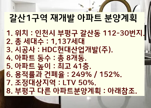 이렇게 오늘은 인천시 갈산동의 갈산1구역 재개발 아파트 분양에 대해서 정리했습니다.