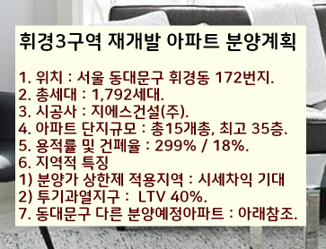 오늘은 이렇게 서울시 동대문구에서 분양예정인 휘경3구역 일반분양을 정리해봐습니다.