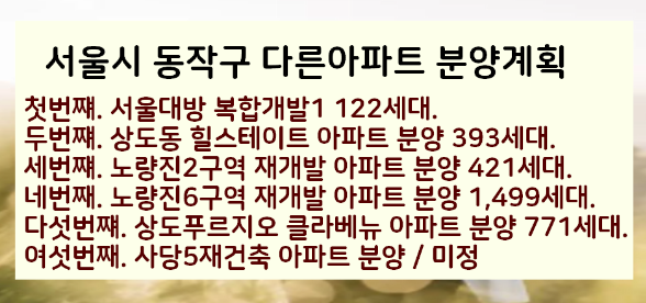 서울 동작구내에 다른 분양예정인 아파트 단지는 어디가 있을까요?.