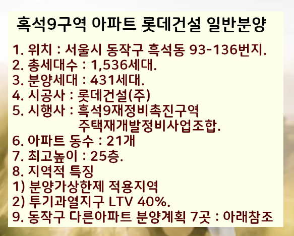 흑석9구역 아파트 롯데건설 일반분양 확인하세요.