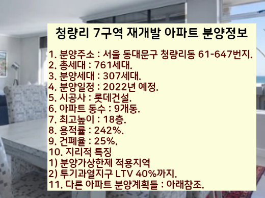 이렇게 오늘은 서울시 동대문구에 분양하는 청량리7구역 재개발 아파트를 살펴봤습니다.