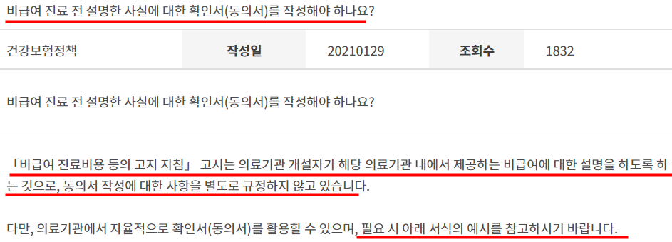 시기에 따라서 '비급여 진료비용 등 고지침' 관련 규정 등이 변경될수도 있으니 확실하게 확인하기 위해서 보건복지상담센터(129)에 문의해서 물어보는것도 좋은방법이라고 생각합니다.