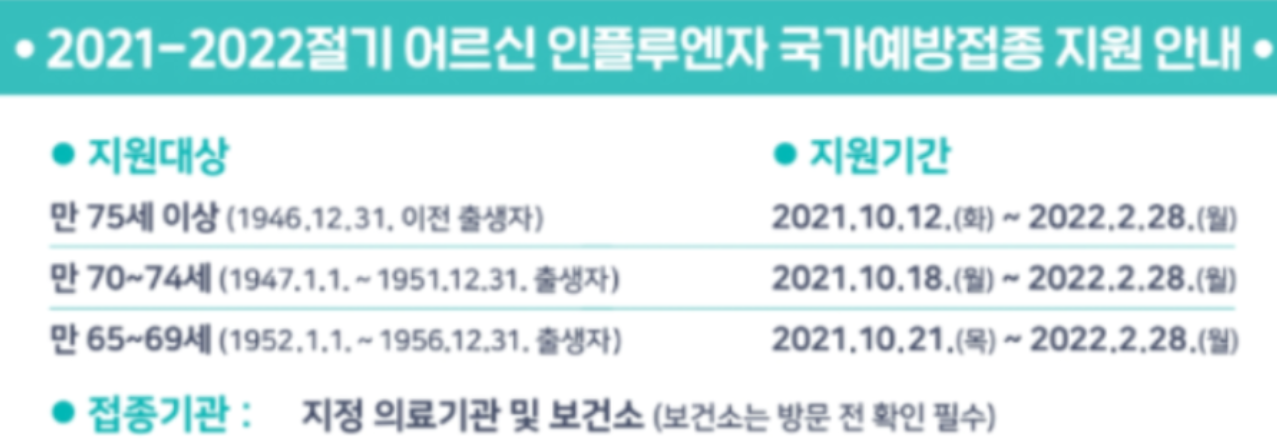 만65세이상 노인 대상으로 지원하는 독감 예방접종으로 기간내에 접수하세요.