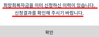 소상공인 희망회복자금을 신청하시고나서 다시 변경접수하려고했더니 이렇게 표시되었습니다.
