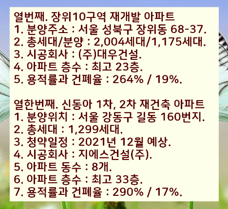 이렇게 서울지역에 강남과 서초구, 송파구, 마포구, 성북구, 성동구 등 다양한 분양가 상한제 적용지역의 아파트들을 소개해드렸습니다.