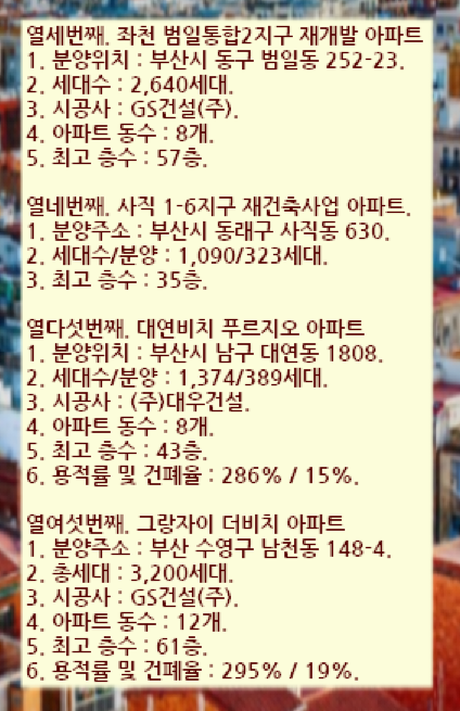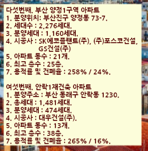 2021년 10월 이후 부산시 분양예정인 아파트를 정리했습니다.