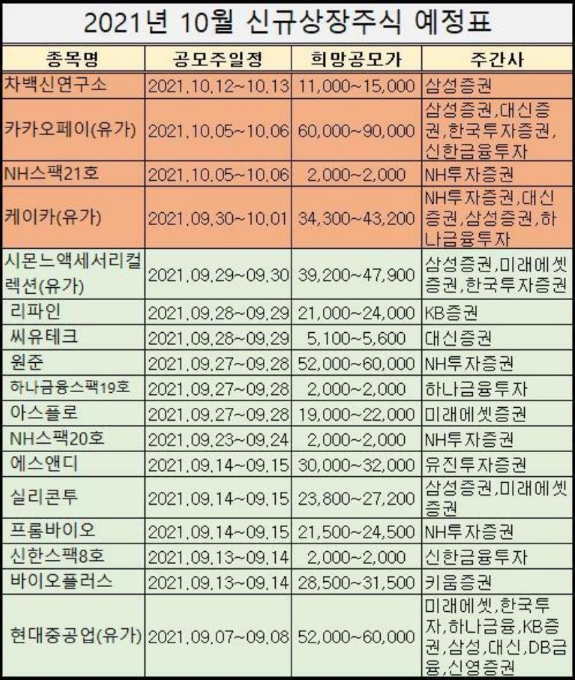 10월 공모주 추천 청약(주식 상장일정)