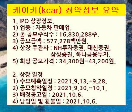 이렇게 오늘은 케이카 공모주 청약정보를 정리해서 알려드렸습니다.