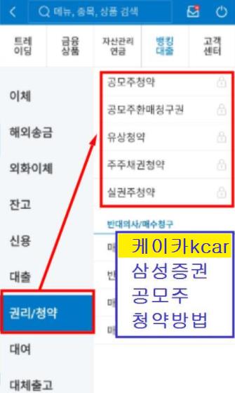 세번째. 권리청약에 들어가시면 공모주 관련 메뉴들이 보입니다.