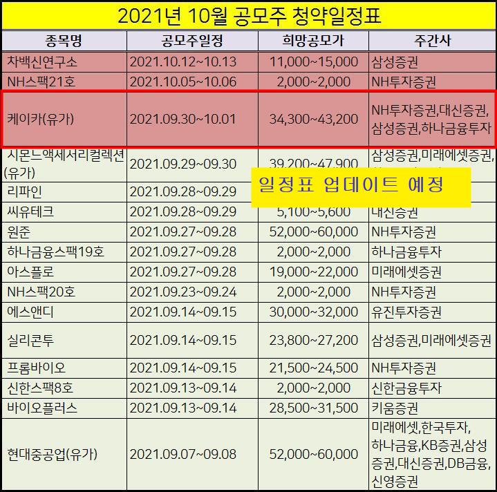 2021년 10월 공모주 청약일정 표