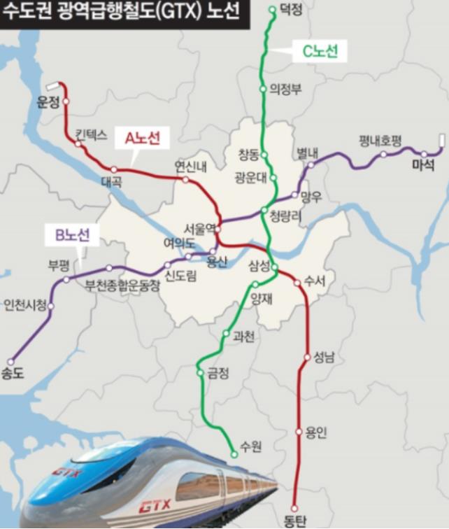 GTX A노선, B노선, C노선도 확인하시기 바랍니다.