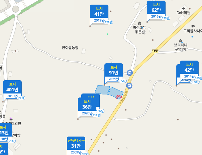 그래서 구억리 주변에 아파트가 없나 호갱노노에서 검색해봤습니다.