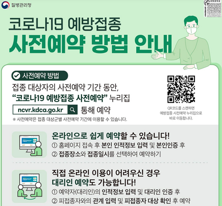 사전예약시스템(ncvr.kdca.go.kr)에서 백신접종 신청하시기 바랍니다.