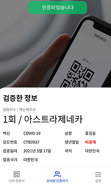 이렇게 스마트폰으로 손쉽게 코로나 백신 접종여부를 증명하실수있습니다.
