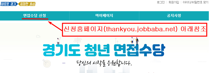 신청 홈페이지에서 접수하실때 경기도 청년 면접수당 자격 및 조건을 다시 한번 살펴보시기 바랍니다.