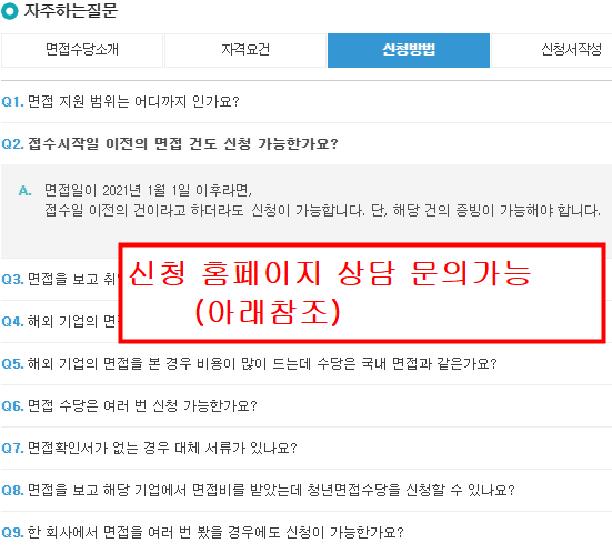 면접수당 신청은 홈페이지에서 아주 쉽게 접수하실수있습니다.