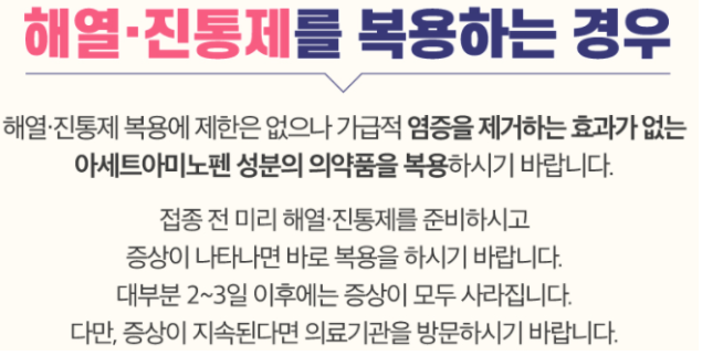 3. 백신 접종전에 해열제 복용은 권고하지 않습니다.