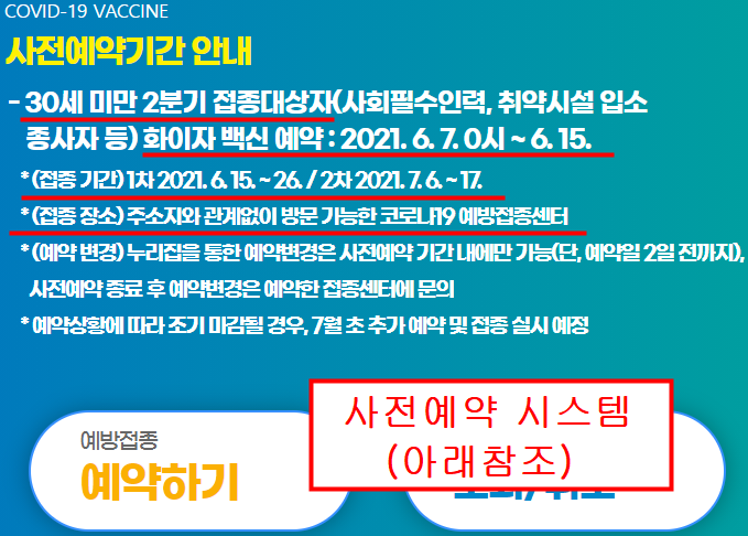 드디어 7월부터는 30세 미만도 백신 사전예약이 가능합니다.