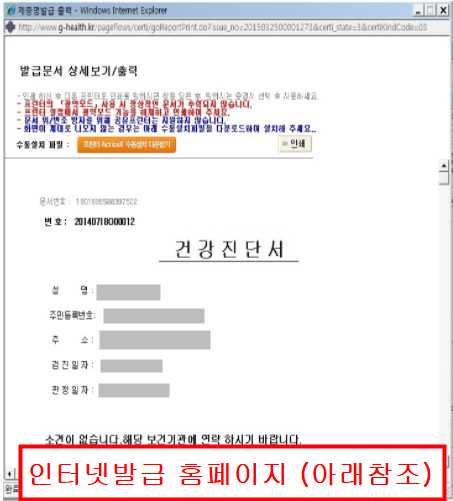 건강진단서도 국문과 영어로 인터넷 출력이 가능하니 참고하시기 바랍니다.