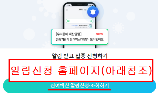 잔여백신 알람신청 홈페이지에서 신청후, 남보다 먼저 예약하세요.