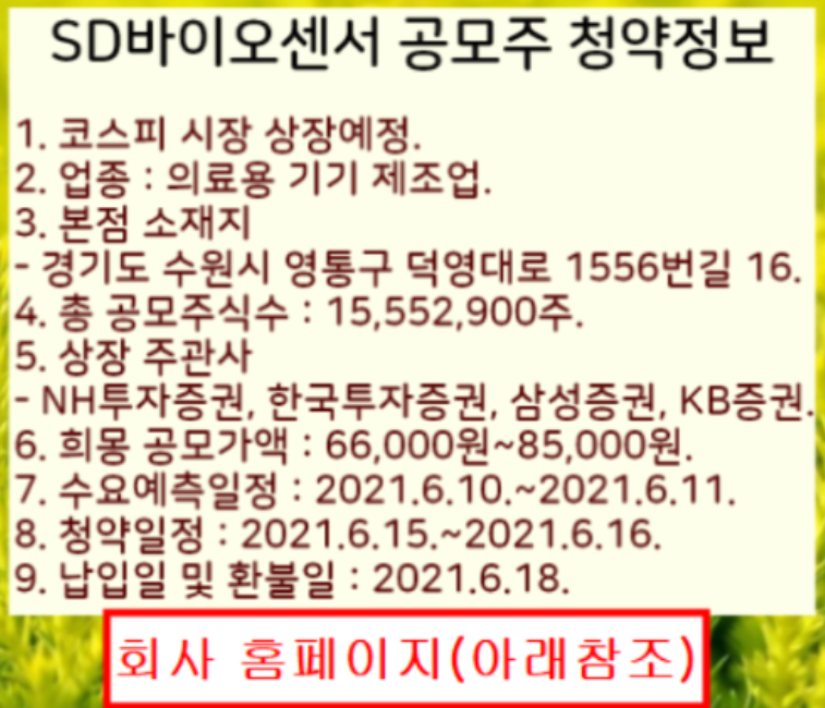 자세한 내용은 알려드린 에스디바이오센서 상장 회사 홈페이지를 참고하시기 바랍니다.