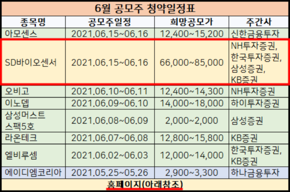 6월 공모주 청약일정표를보시고 아래 포스팅에 각 주식들의 수요예측일정도 표로 정해놨습니다.