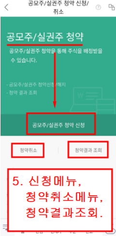 신청은 '공모주/실권주 청약신청/취소'를 선택하시면됩니다.