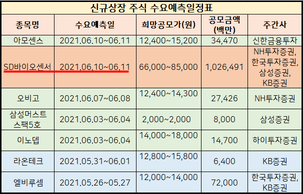 2021년 6월 신규상장 주식 청약일정은 추후 사정에따라서 연기되거거 변경될수있으니 참고하세요.