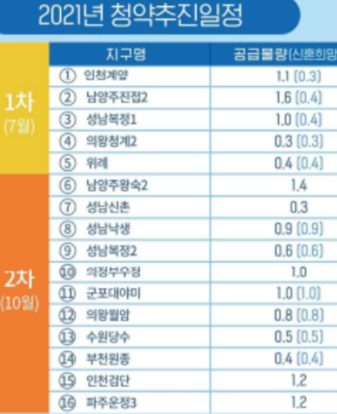 또한 2021년에는 3기 신도시로 수도권에 많은 공공분양 청약물량이 있습니다.