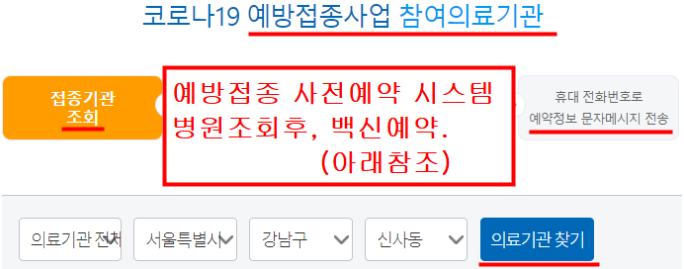 코로나 백신접종 가능 병원조회하는 방법은 그림으로 아래를 참조하시기 바랍니다.